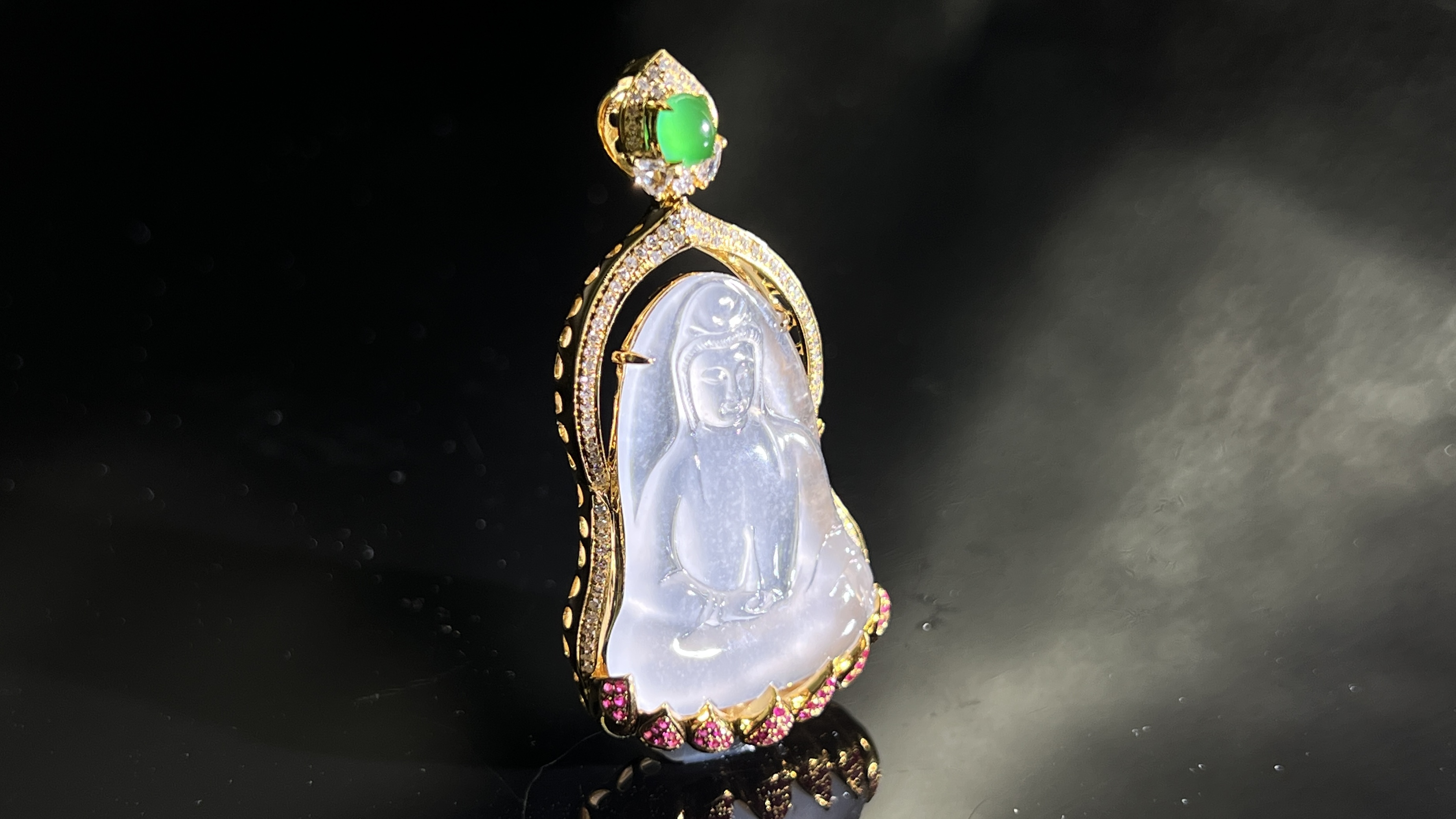 匀:颜色分布均匀,没有「一块深一块浅」的斑驳感,比如满绿翡翠比飘绿翡翠贵,就是因为颜色更匀;